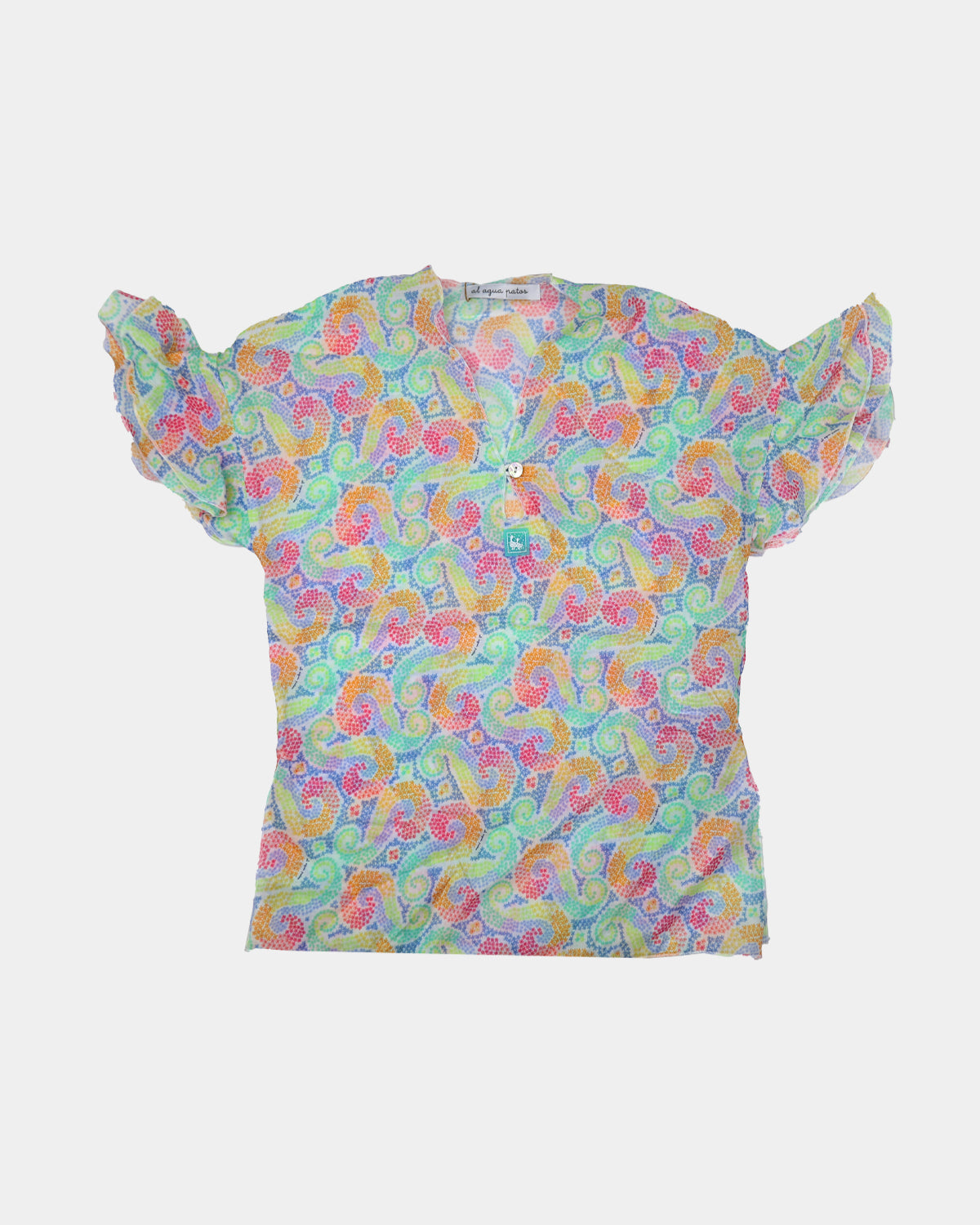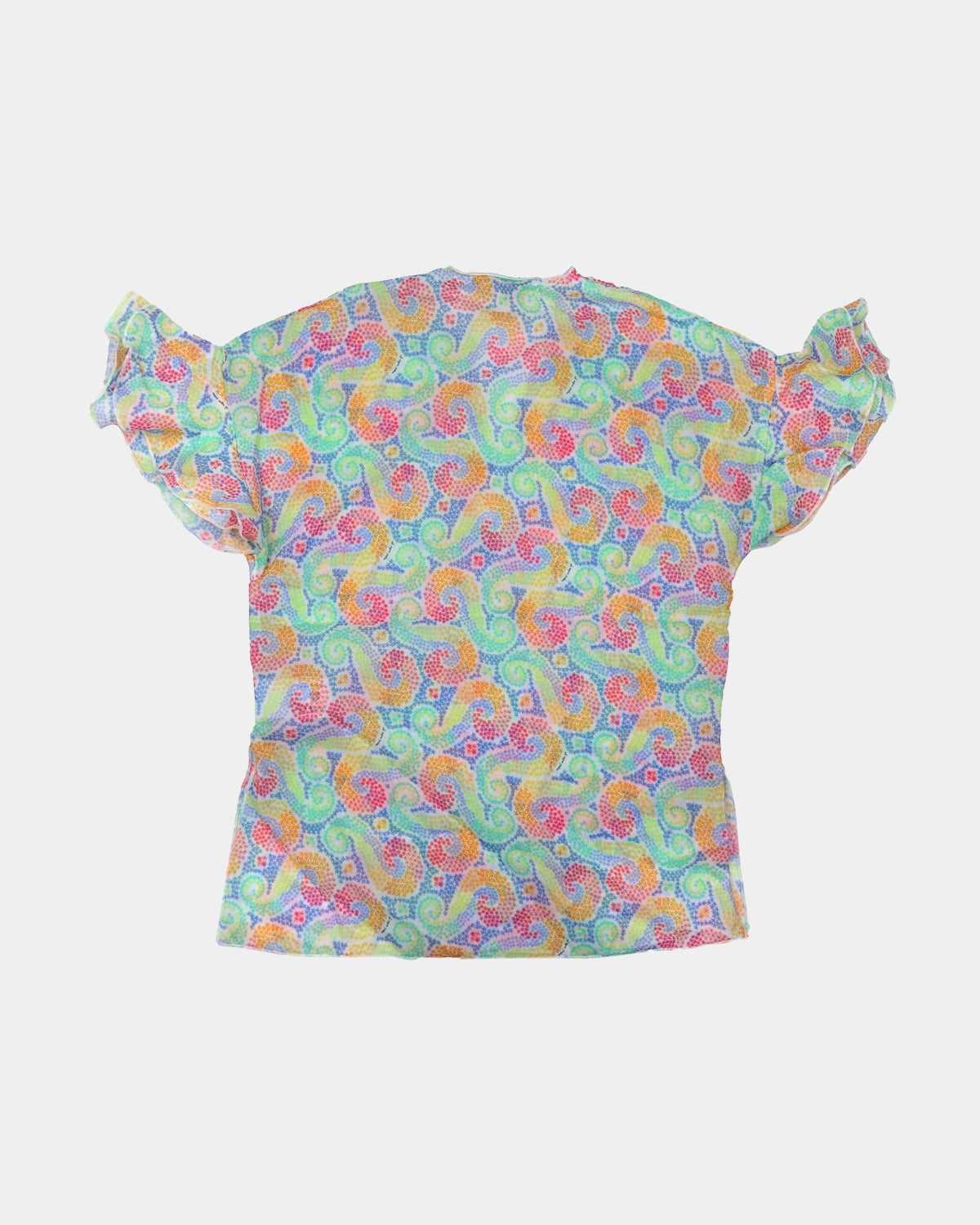 Esta ligerísima túnica, esta confeccionada con el estampado de la serie Gaudí. Queda genial combinado con el bikini o el bañador de la misma serie. Su escote permite que sea fácil de poner y quitar y los volantes de las mangas le dan un toque único. Este kaftán está confeccionado en fino voile, de algodón 100%.