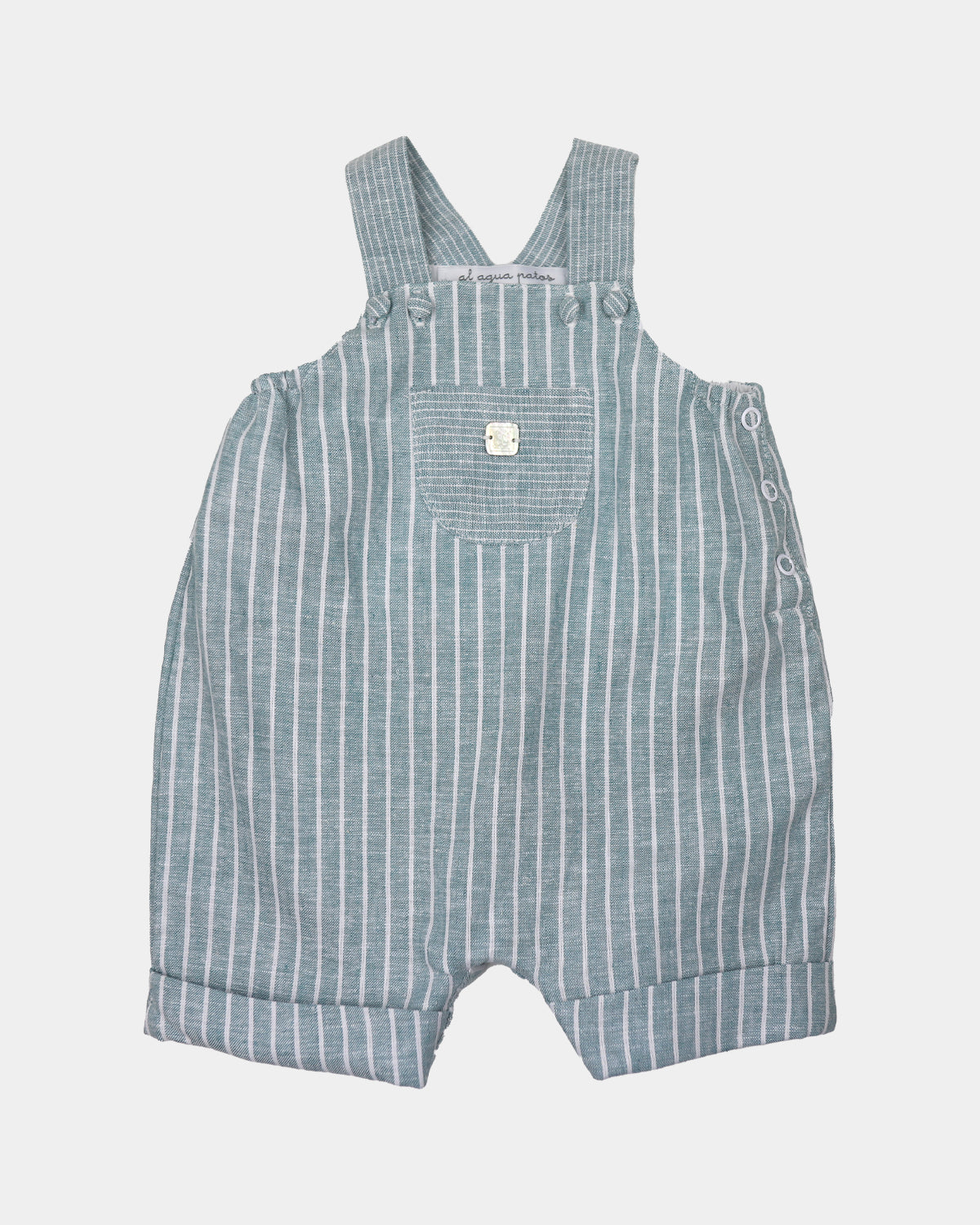 Este pelele de la serie Alina, es ideal para bebes debido a su apertura en la entrepierna, con automáticos. Los botones de los tirantes son fijos tirantes, pero esto no supone un problema debido a la gran elasticidad de la prenda, que es completamente unisex. En la pechera lleva bordado nuestro anagrama formado por una familia de patos. Las figuras de esta aplicación tienen un cierto relieve.