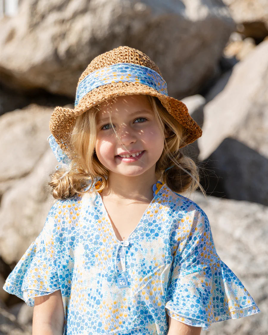 Este sombrero nature incluye una cinta con el estampado de la serie Tuli, que le da un toque de color ideal para veraono. Es perfecto para lucirlo combinado con otras prendas de la misma serie y darle un toque final al look.